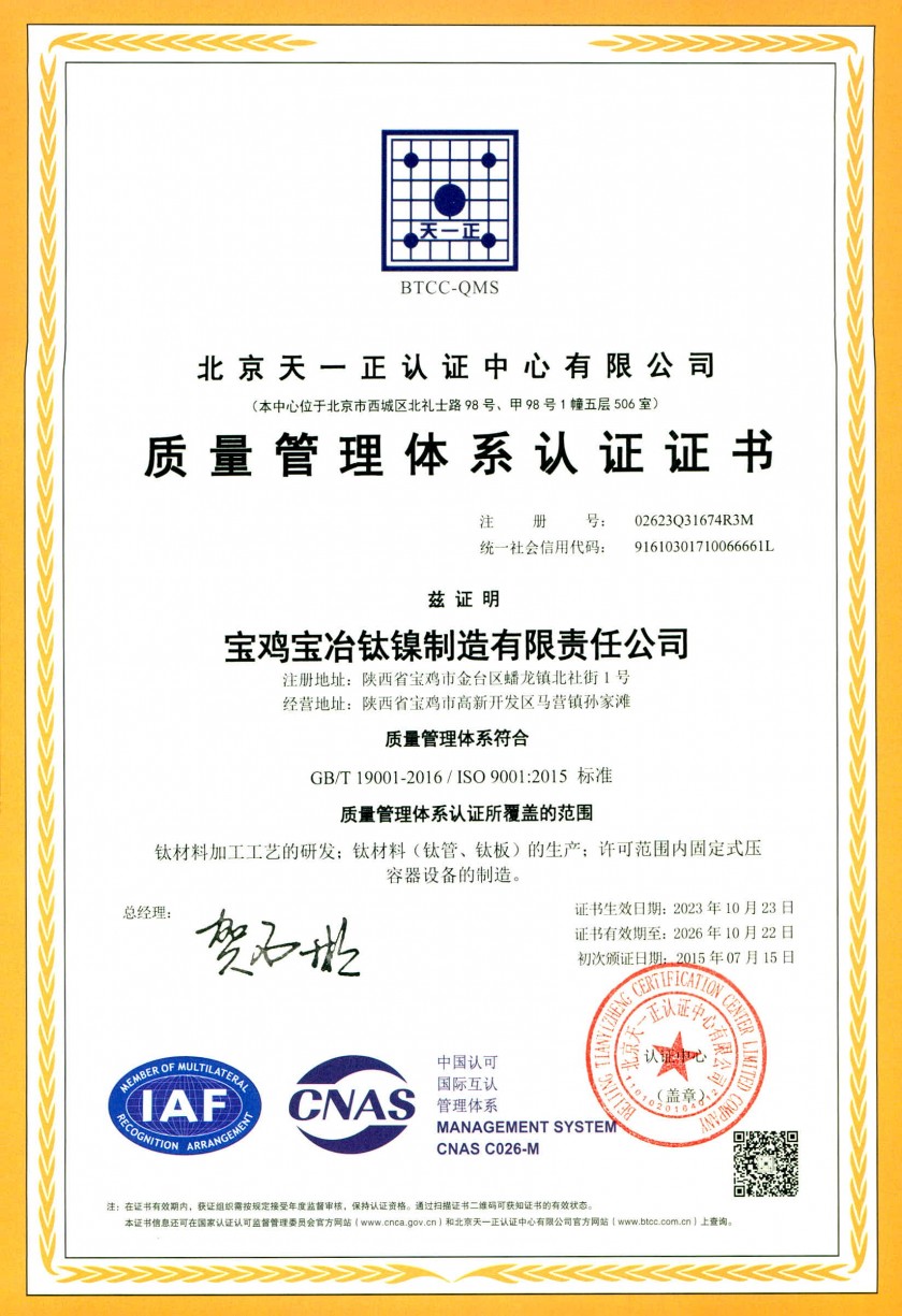 寶雞寶冶鈦鎳制造有限責任公司