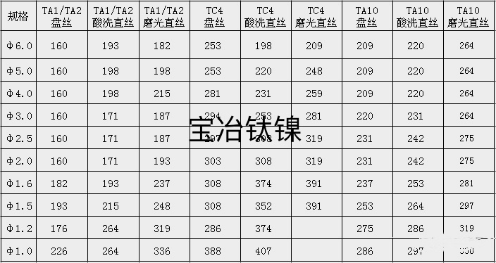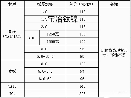 寶雞寶冶鈦鎳今日鈦絲鈦板鈦棒價格