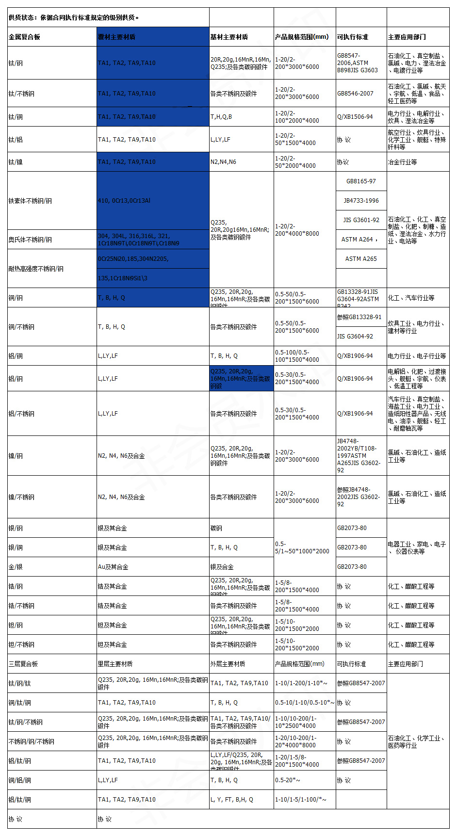 寶冶鈦鎳金屬復(fù)合板品種規(guī)格
