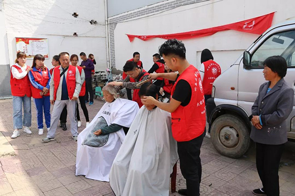 6、彬州市名流染燙連鎖店李璽等3位理發(fā)師為村民理發(fā)